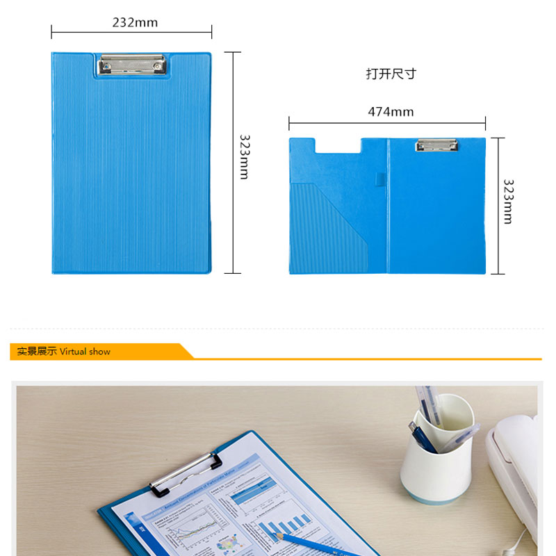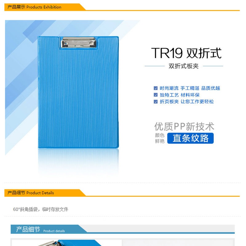 齊心(COMIX) TR19 辦公必備雙折式板夾 A4 直條紋 顏色隨機(jī)