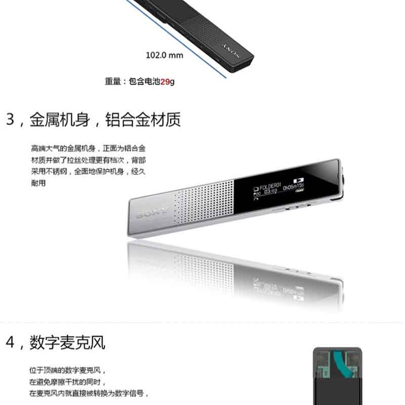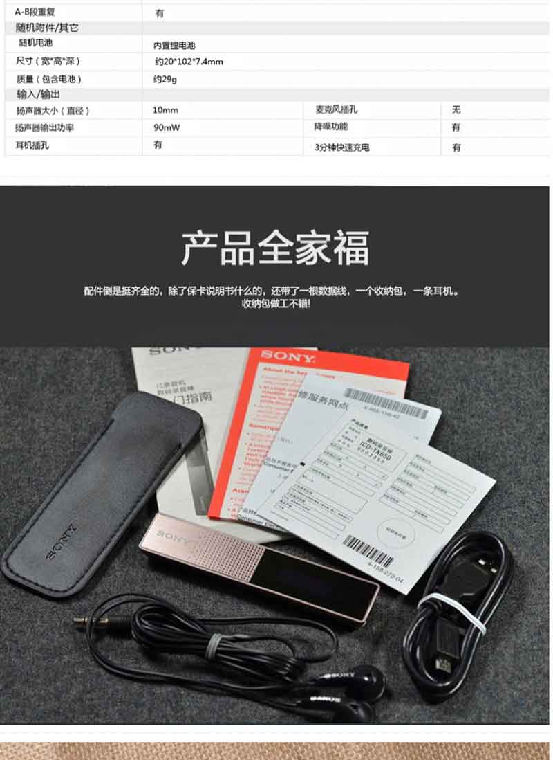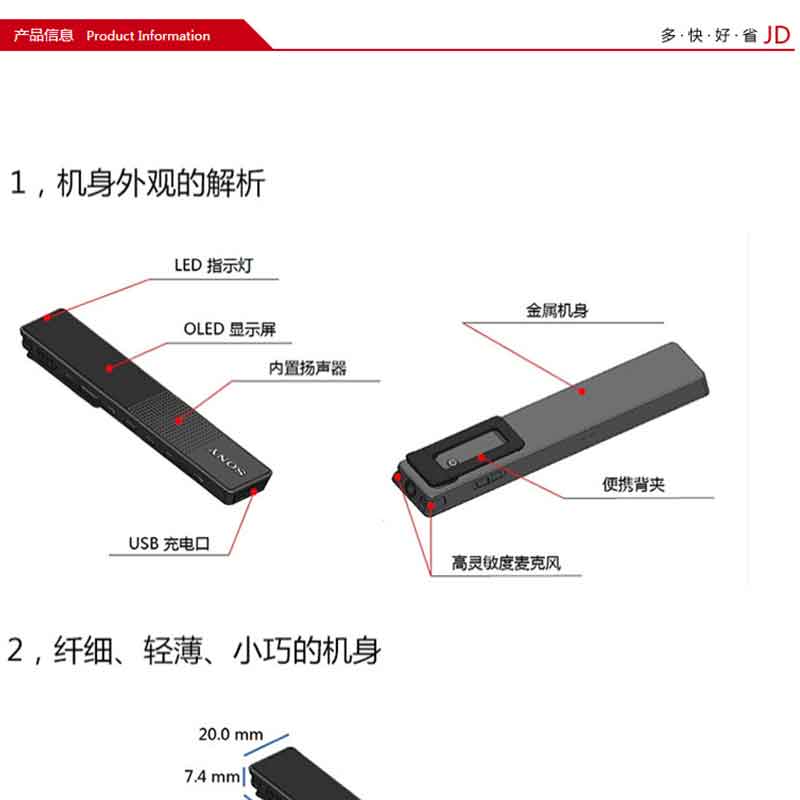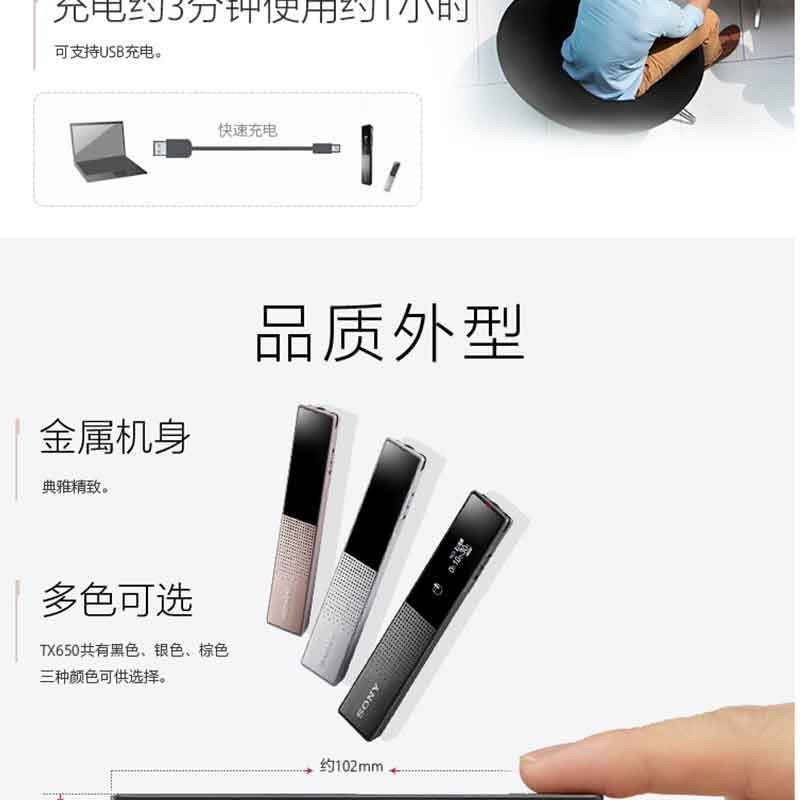 索尼(SONY) ICD-TX650 數(shù)碼鋰電錄音棒 16G 黑色 會議錄音 迷你易攜帶TX50升級款(棕色)