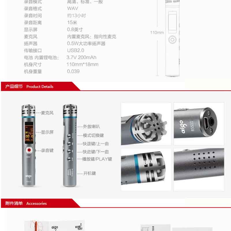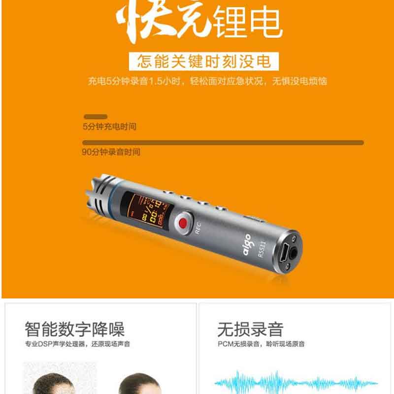 愛國者(aigo) R5511 錄音筆 專業(yè) 微型迷你 學(xué)習(xí)/會議采訪取證錄音器 高清遠距降噪 MP3播放器 灰色(16G)