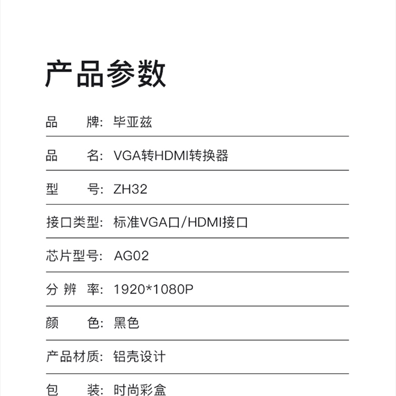 畢亞茲VGA轉(zhuǎn)HDMI轉(zhuǎn)換器帶音頻ZH32