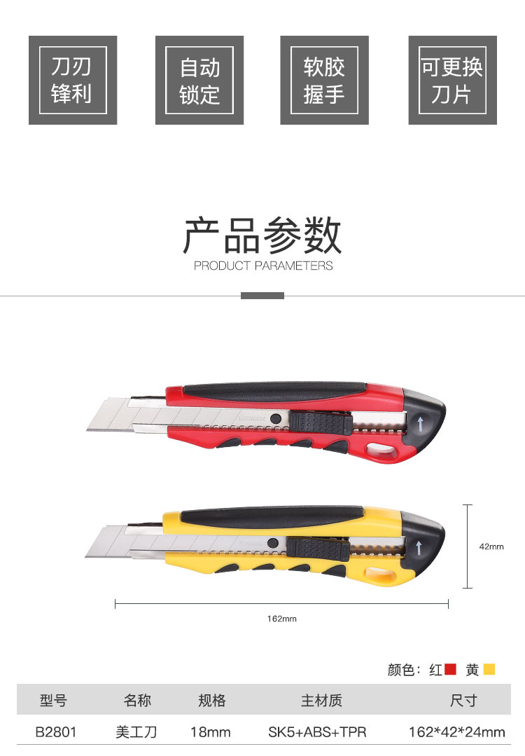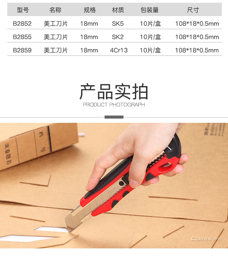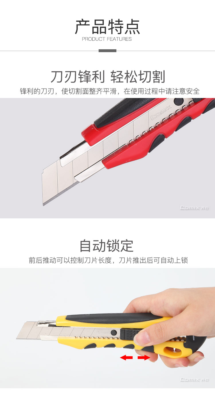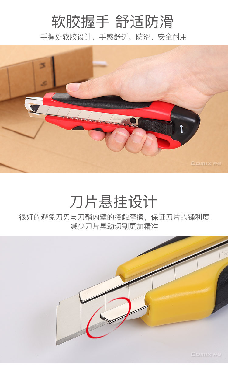 齊心(COMIX) B2801 18mm舒適防滑大號美工刀壁紙刀顏色隨機
