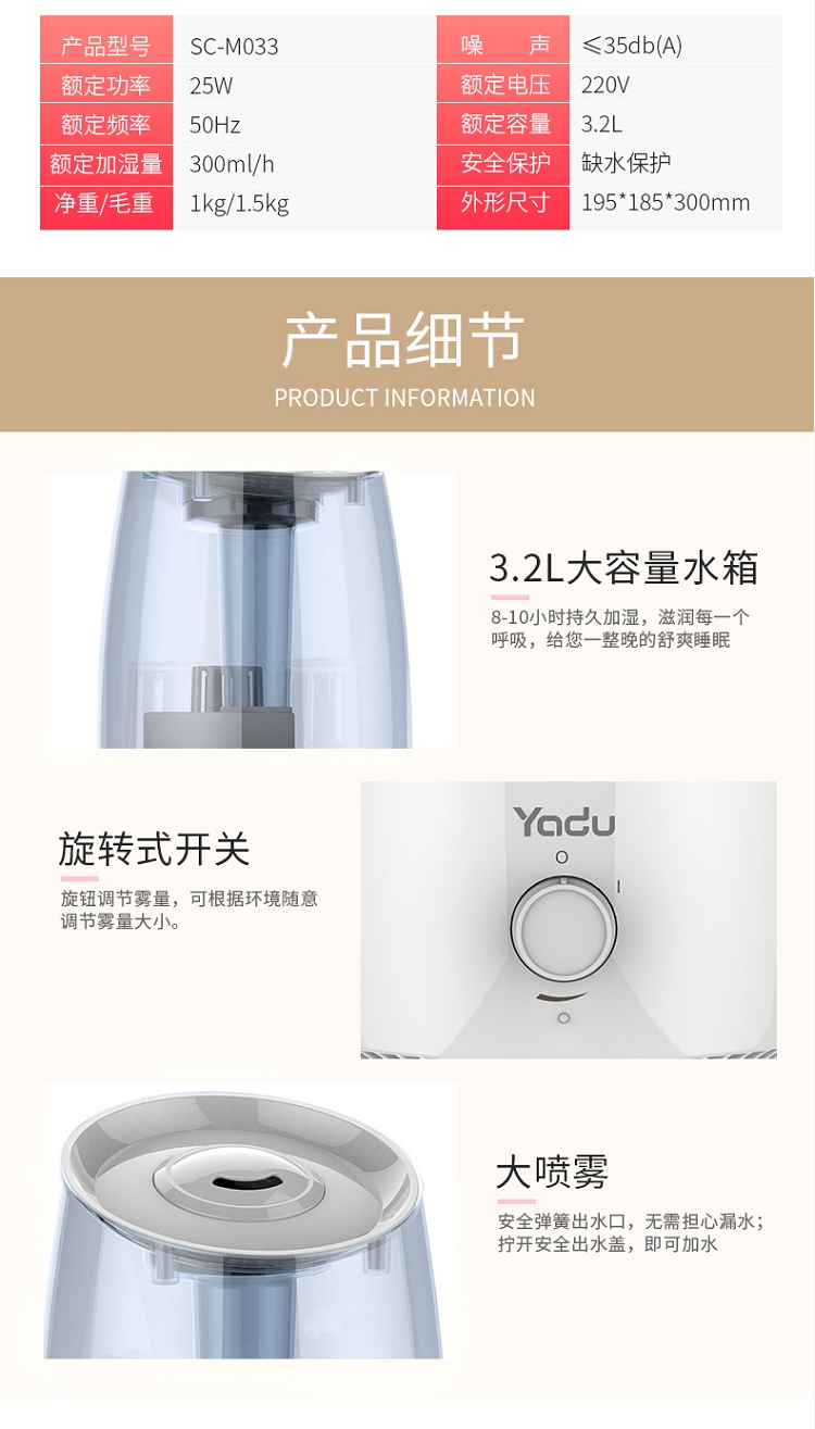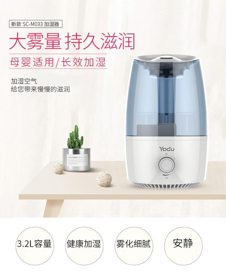 亞都空氣加濕器 SC-M033辦公大容量3.2升噴霧增濕機(jī) 靜音 藍(lán)灰色
